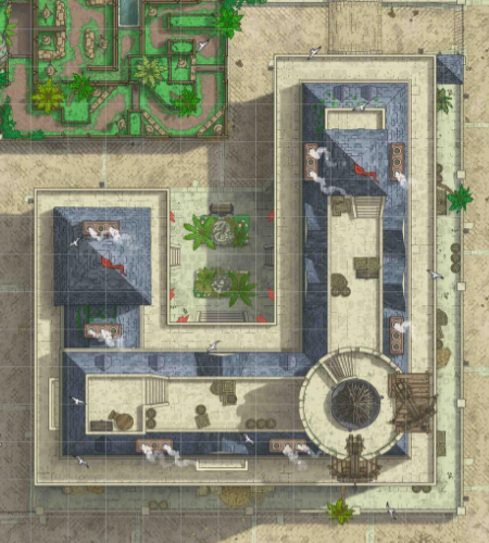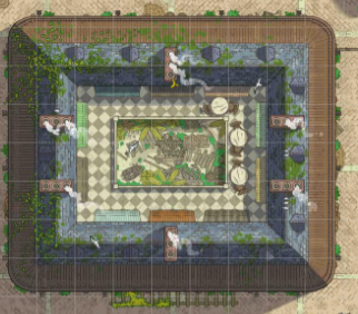 Recientemente se ha remodelado el extenso patio trasero para la exhibición de las bestias cazadas, con el fin de abrirse al publico general como un jardin de bestias.
